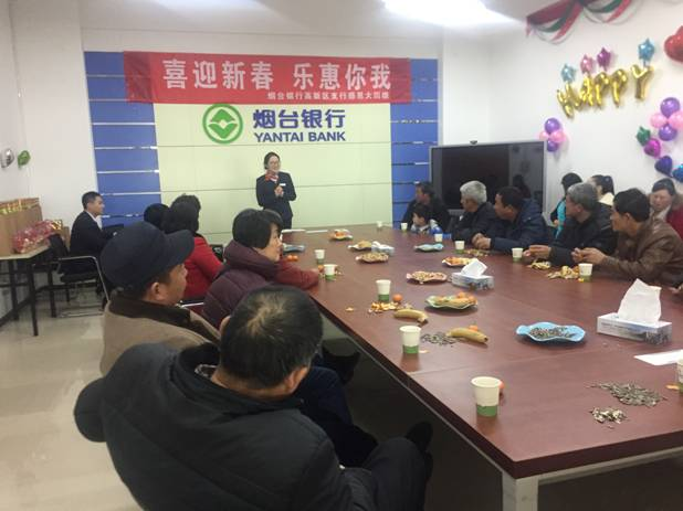 近日,蓬莱支行邀约优质客户参加“烟行贺新春,寿司传真情”新春客户答谢会活动,高新区支行举办“喜迎新春,乐惠你我”的高端客户答谢会,毓璜顶支行与烟台国税局奇山分局合作,邀请20家年纳税额10万元以上、纳税信用A级优质企业参加“携手企业发展”新春答谢活动,招远支行邀请当地钓鱼协会60多位老干部举办“约惠烟行渔乐无限”室内沙龙活动。期间,支行对大家关心的金融知识进行了详细讲解,并根据客户特点宣传烟台银行优势产品和业务,得到了普遍欢迎。